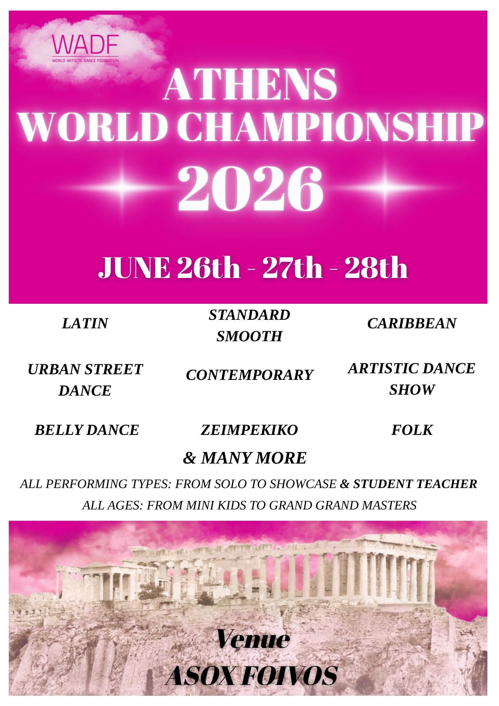 WADF is a non-profit, non-political democratic worldwide dance-organisation with a dedicated enthusiastic leader team who together have more than 250 years of experience in the Art of dance.
