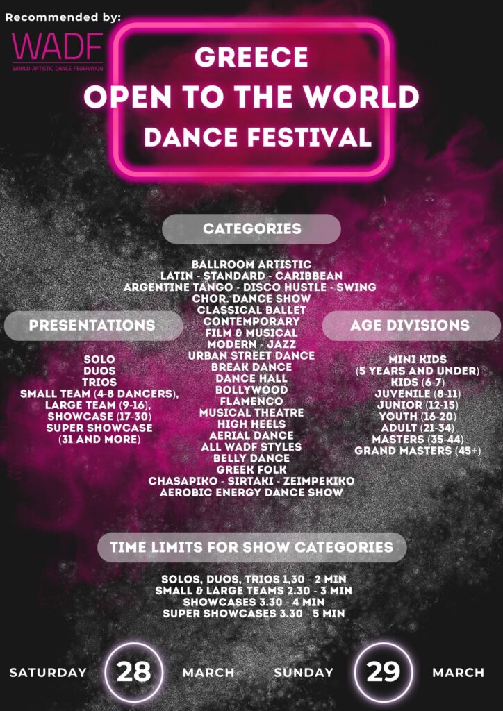 A WADF Granted title event. The Clubs and schools must be a member of the WADF and the dancers must be registered and paid a license fee of 5 Euro.